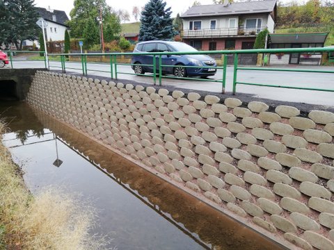 Speciální svahovka pro zpevňování břehů vodních toků, návodní strany vodních hrází, opěrných zdí s patou ve vodě, sanace poškozených a zničených břehů po povodních atd.